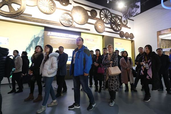 采访团成员参观重汽汽车博物馆。