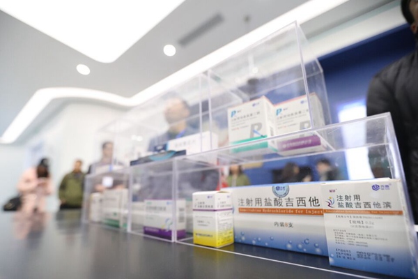 齐鲁制药集团展厅内展示的产品。